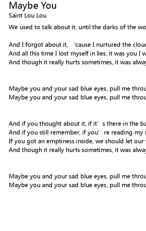 | Maybe you and your sad blue eyes, pull me through, out of all these lies | |