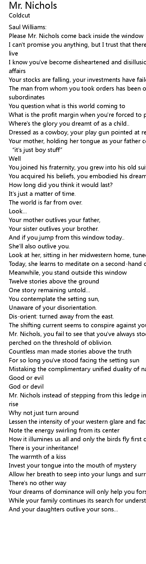 | 歌曲 | Mr. Nichols |