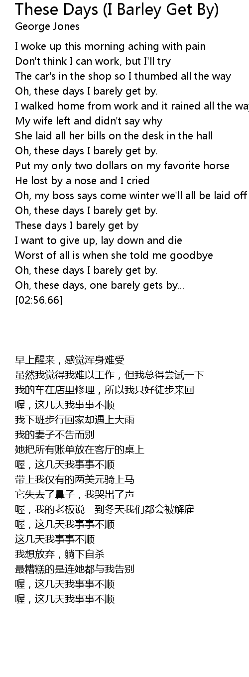 These days I barely get by |