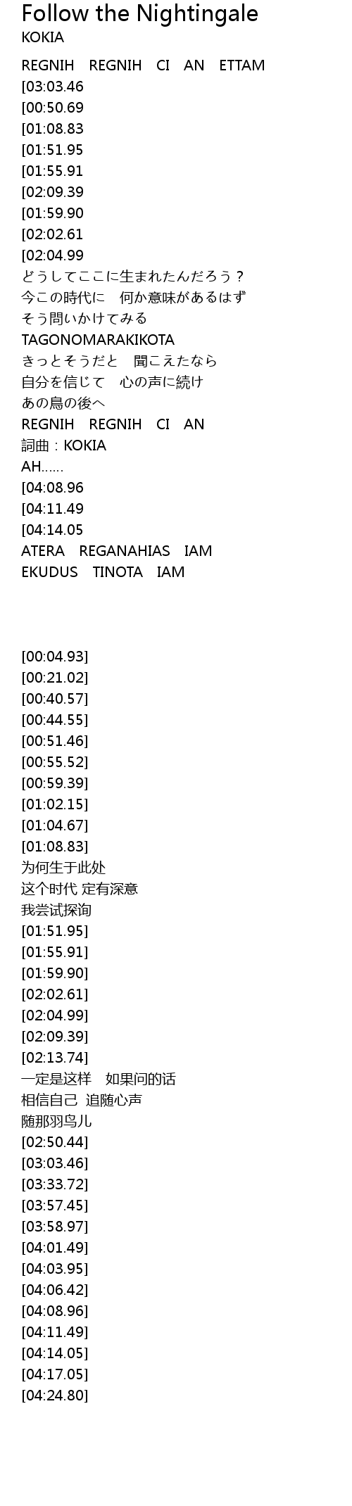 | [00:21.02][03:03.46] | REGNIH ETTAM ETTAM |