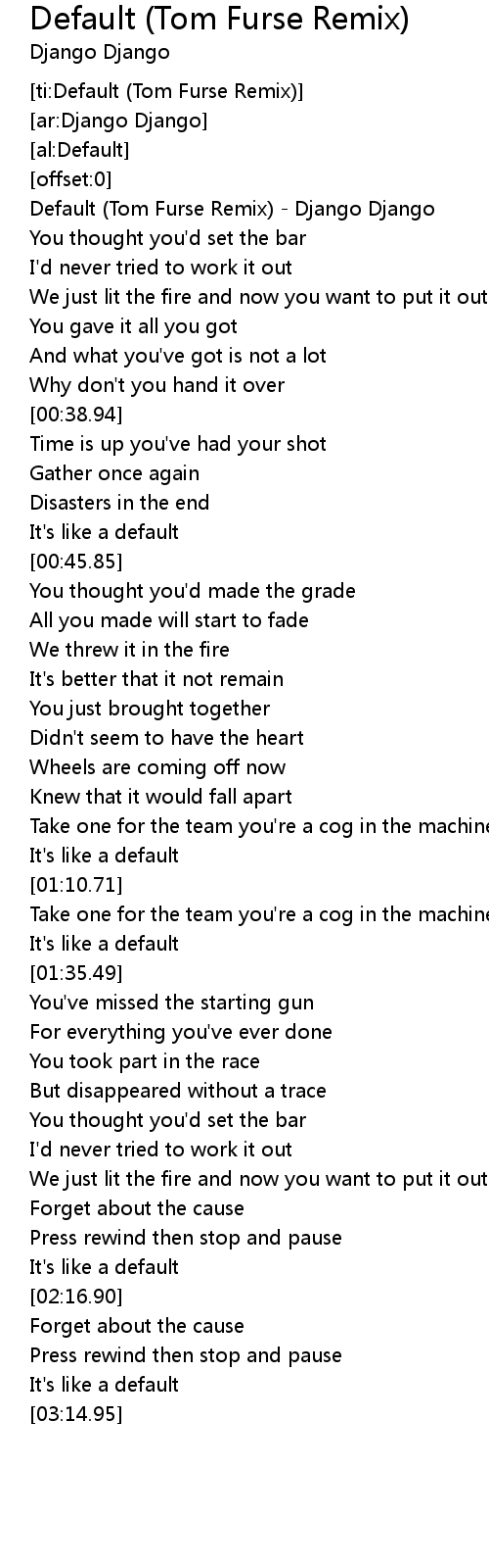 [ti:Default (Tom Furse Remix)] |
