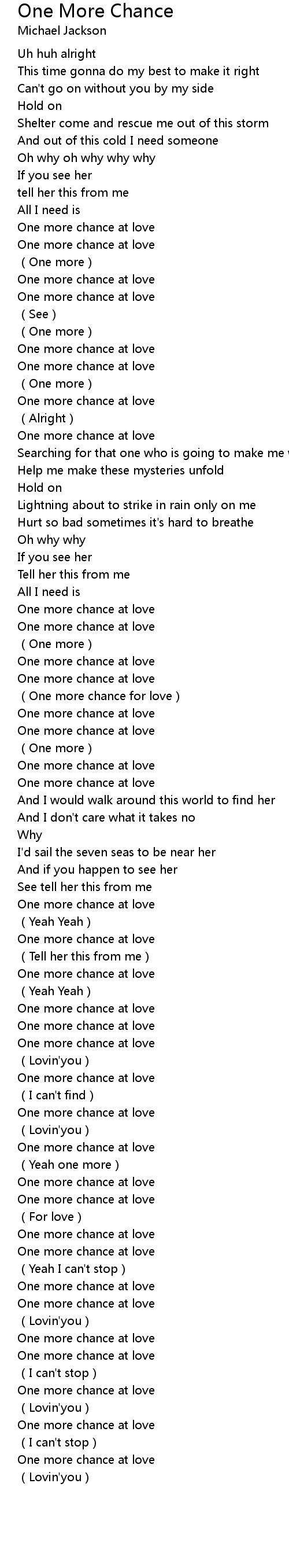 | [03:00.906] | One more chance at love |