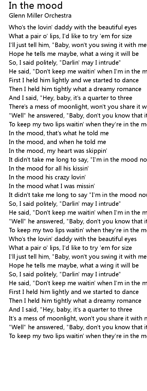 He said, "Don't keep me waitin' when I'm in the mood" |