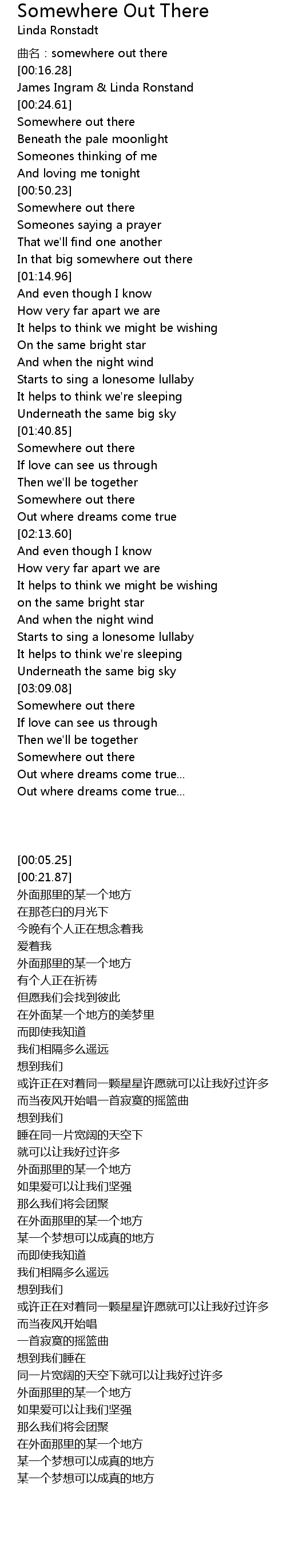 | [03:26.19] | Somewhere out there |