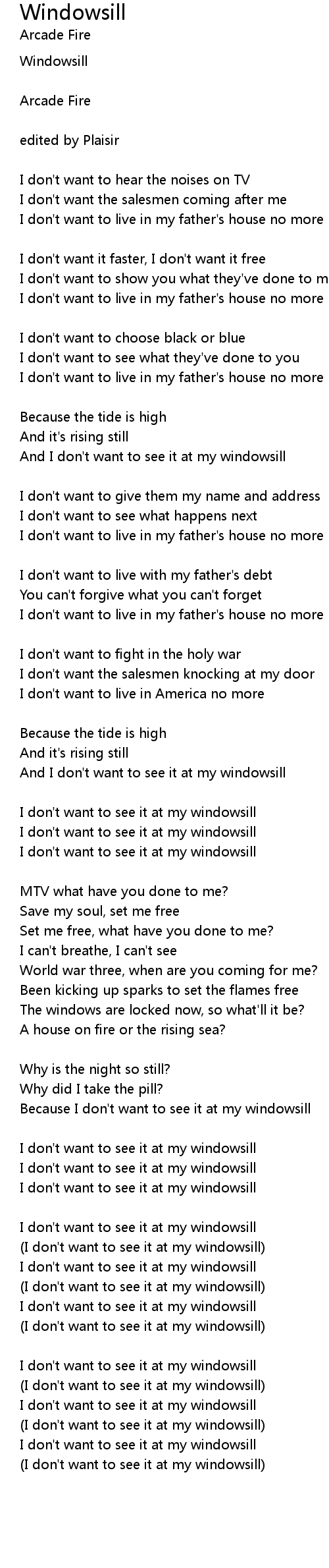 And I don't want to see it at my windowsill |