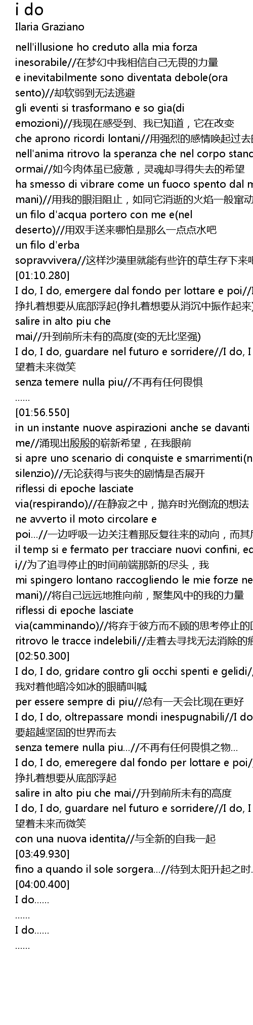 | [03:36.600] | I do, I do, guardare nel futuro e sorridere I do, I do, wang zhe wei lai er wei xiao |