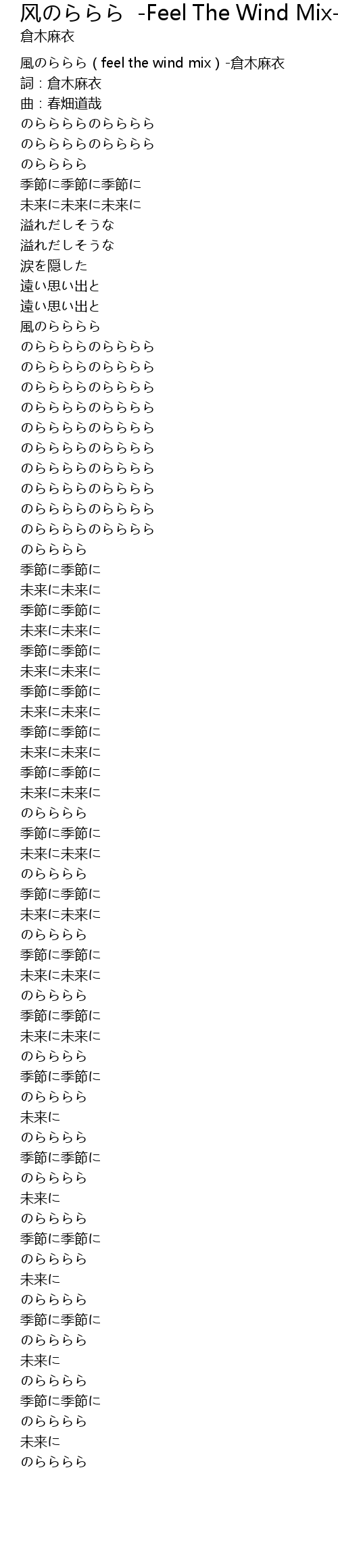 | [00:00.241] | 風のららら(feel the wind mix)-倉木麻衣 |