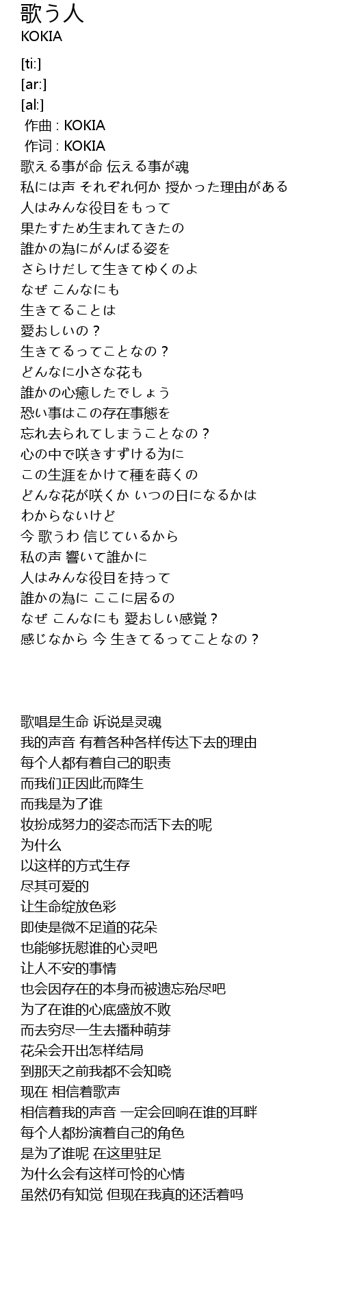 | [00:00.00] | 作曲 : KOKIA |