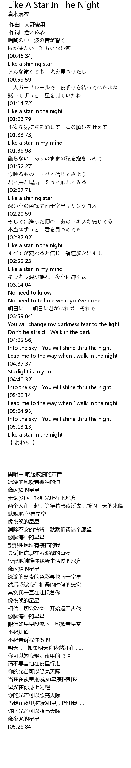 | [05:18.40] | Like a star in the night |