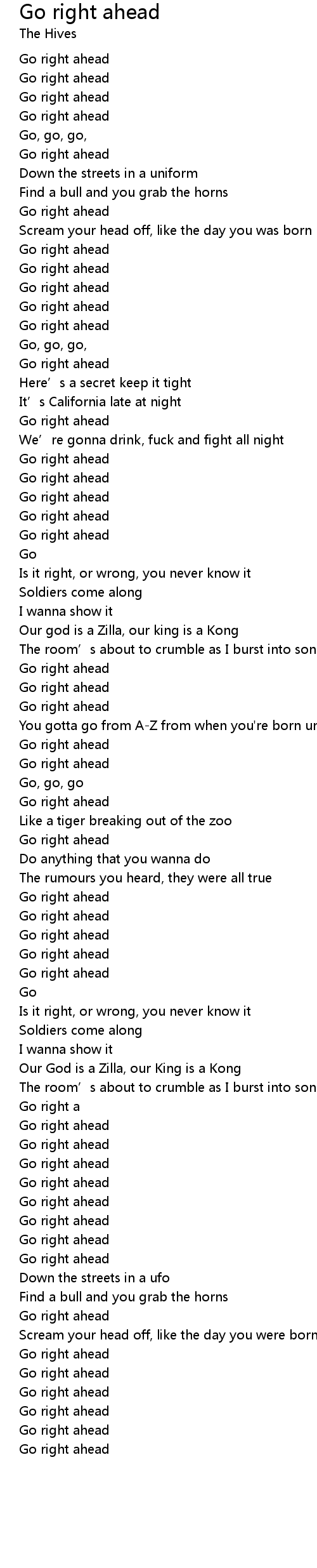 | Go, go, go, | |