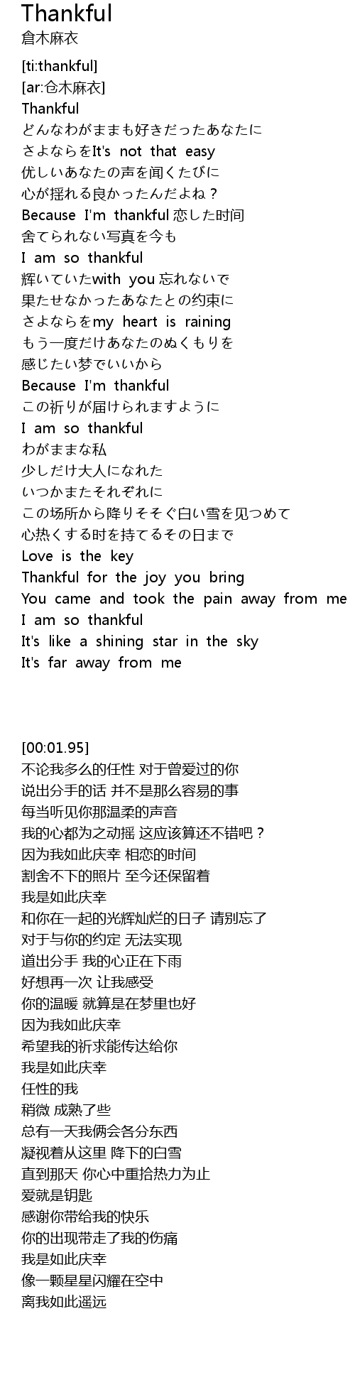 | [00:51.33] | Because I'm thankful 恋した时间 |