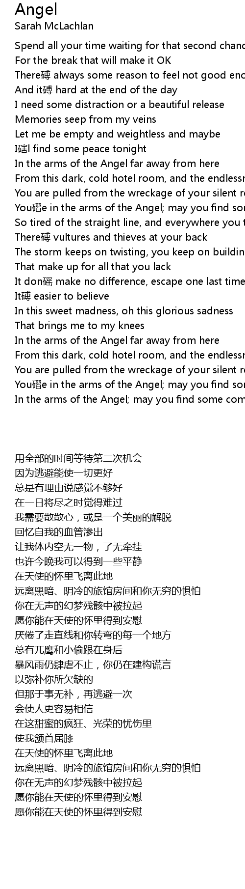 | [03:47.00] | In the arms of the Angel; may you find some comfort here |