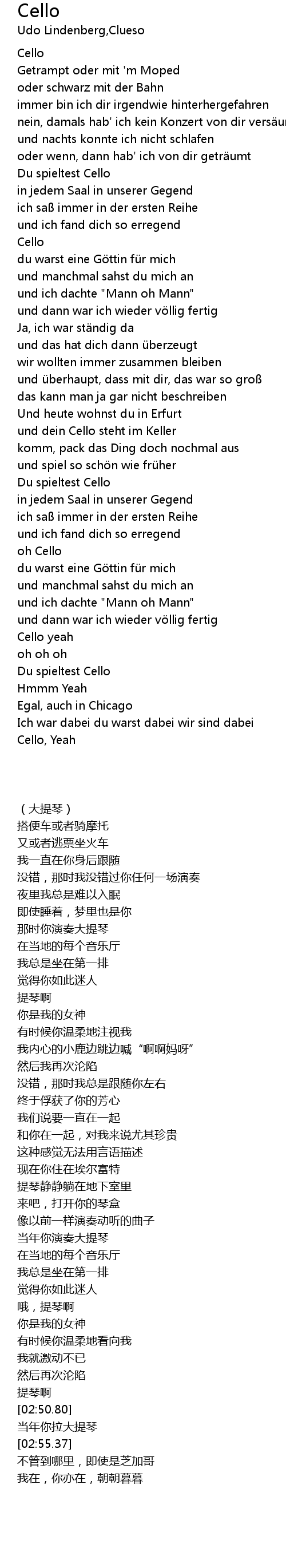 | [02:52.44] | Du spieltest Cello |