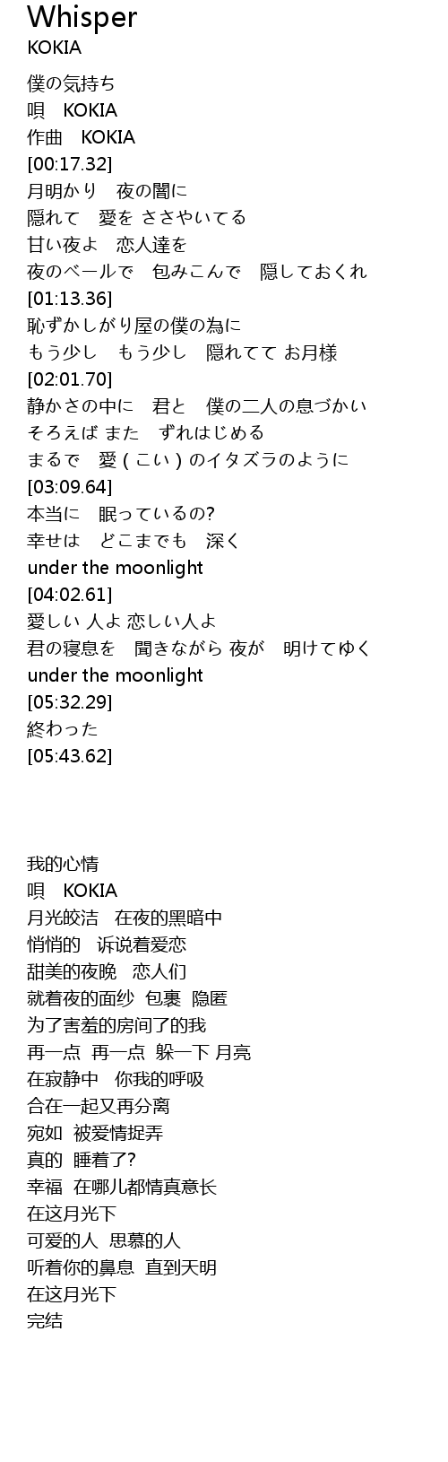 | [02:25.46] | 静かさの中に 君と 僕の二人の息づかい |
