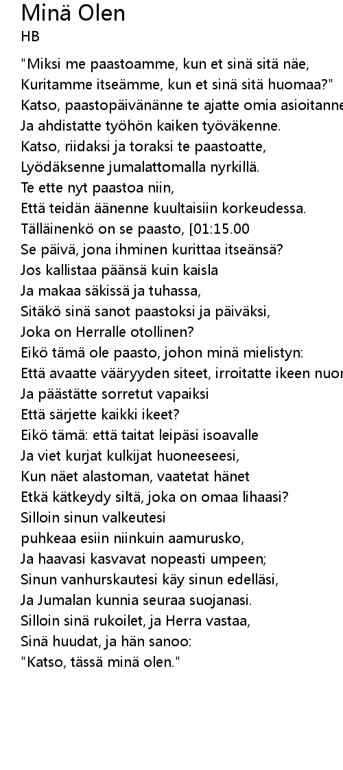 | [00:38.00] | Katso, paastop iv n nne te ajatte omia asioitanne |