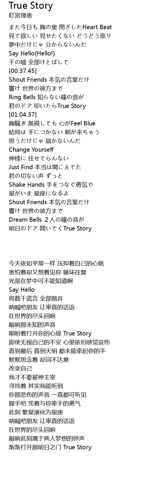 | [00:55.97] | 期盼着打开你的心扉 True Story |