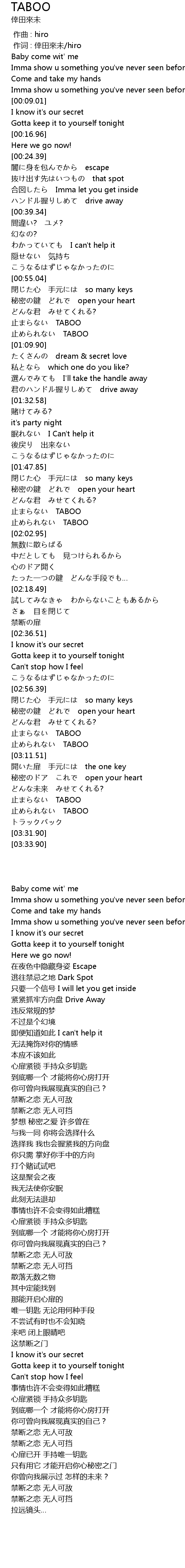 | [03:23.47] | zhǐ TABOO |