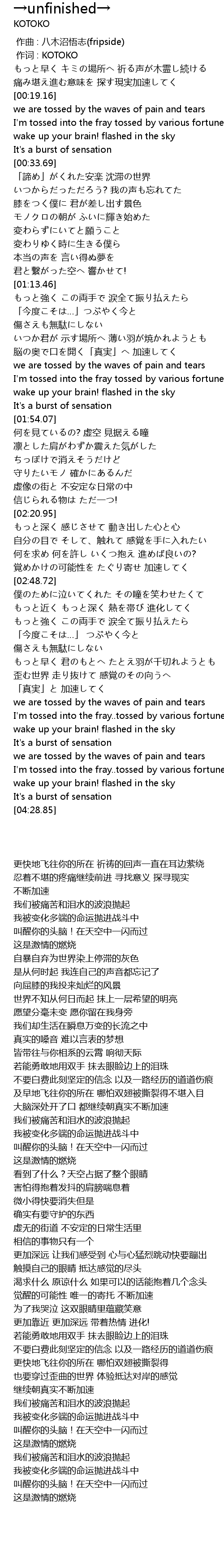| [02:41.34] | 觉醒的可能性 唯一的寄托 不断加速 |