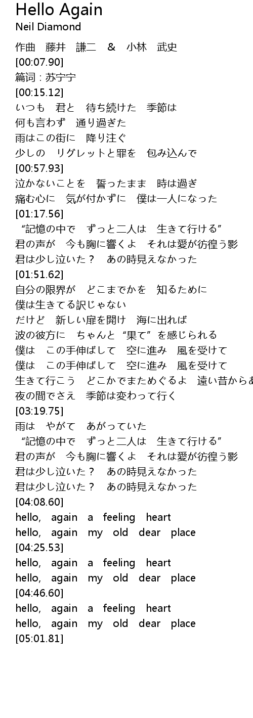 | [04:32.41] | hello, again a feeling heart |