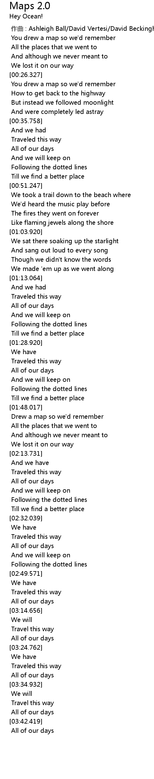 | [01:23.123] | Following the dotted lines |