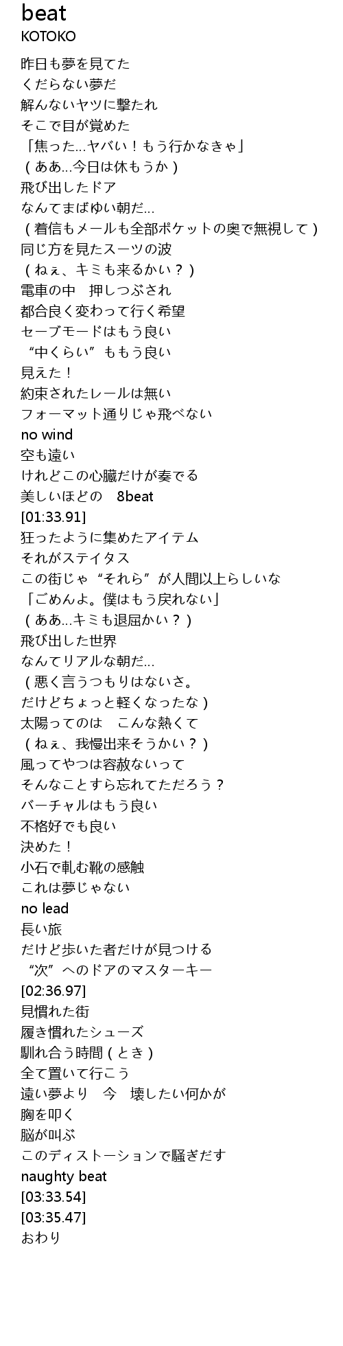 | [01:18.32] | フォーマット通りじゃ飛べない |