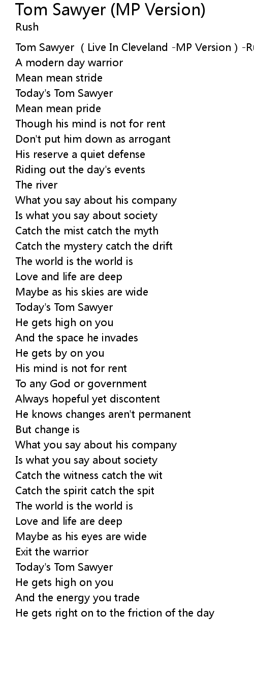| [00:03.441] | Tom Sawyer Live In Cleveland MP Version Rush |