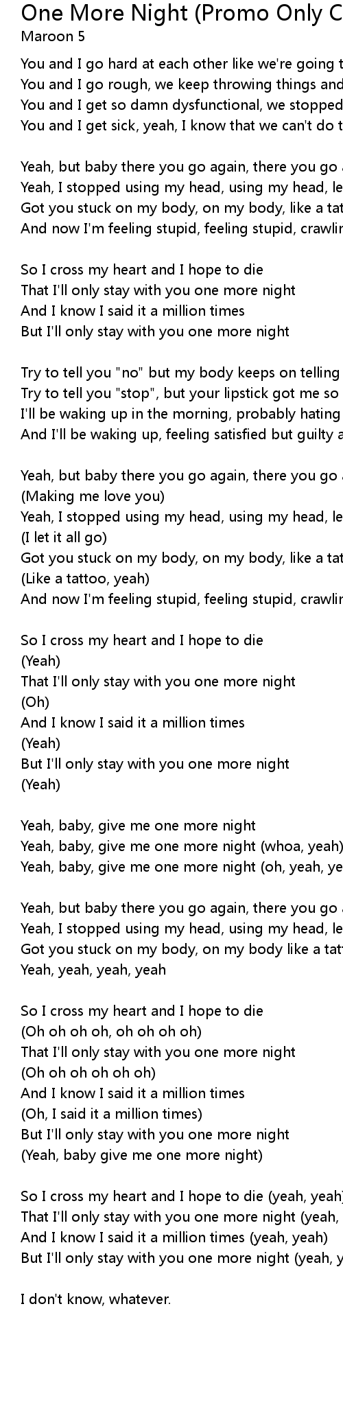 That I'll only stay with you one more night (yeah, yeah) |