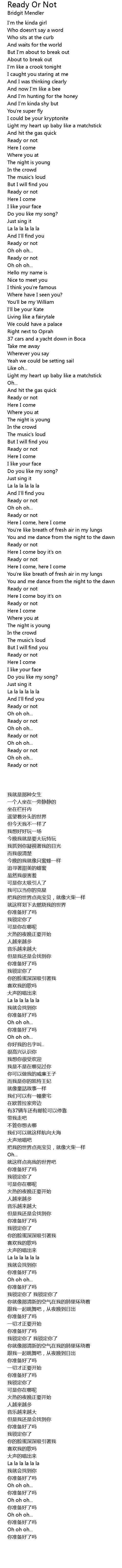 Ready Or Not 歌词