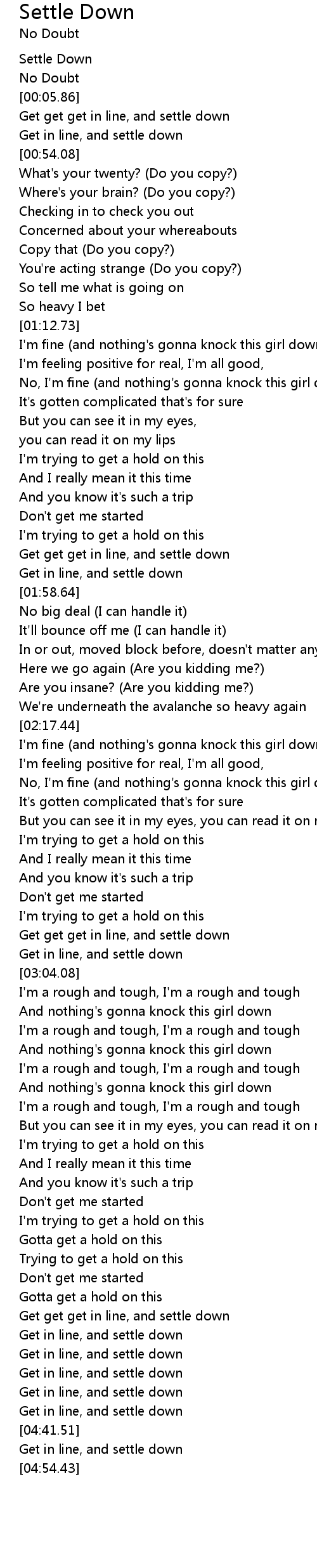 Get get get in line, and settle down |
