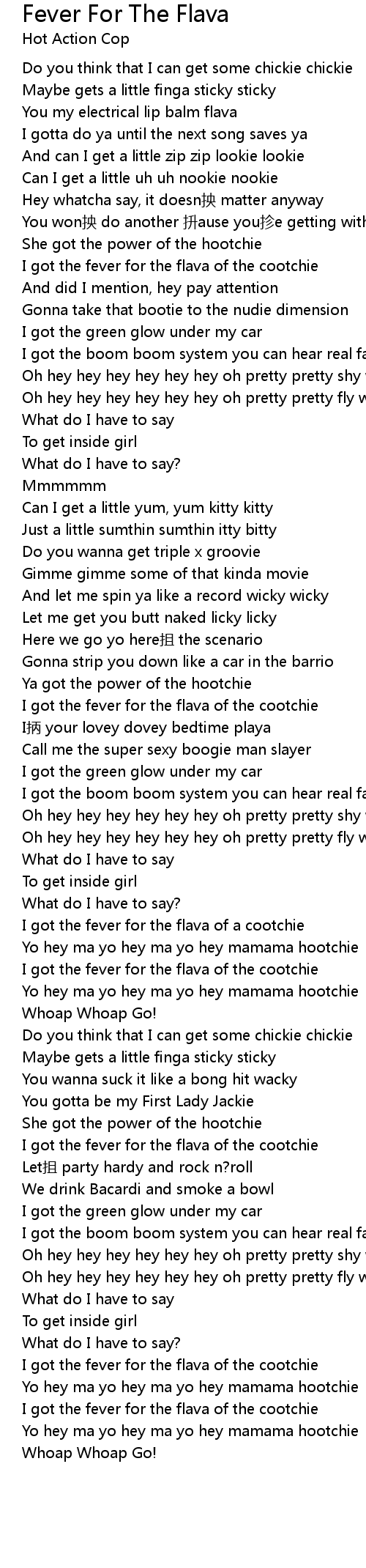 | [00:37.13] | I got the fever for the flava of the cootchie |
