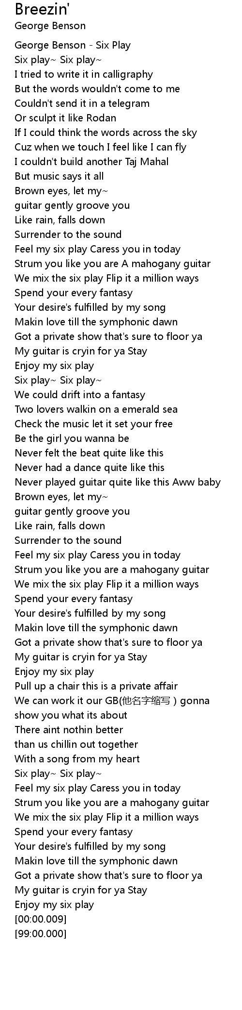 | [00:59.99] | Strum you like you are A mahogany guitar |