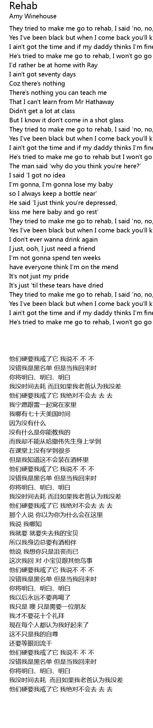 He's tried to make me go to rehab but I won't go go go |