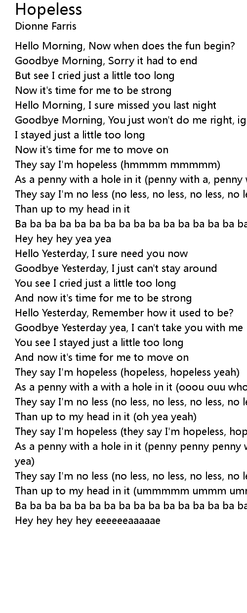 They say I'm hopeless (they say I'm hopeless, hopeless yeaaa yea yea yea) |
