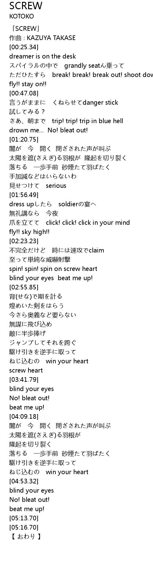 | [00:11.34] | zuo qu KAZUYA TAKASE |
