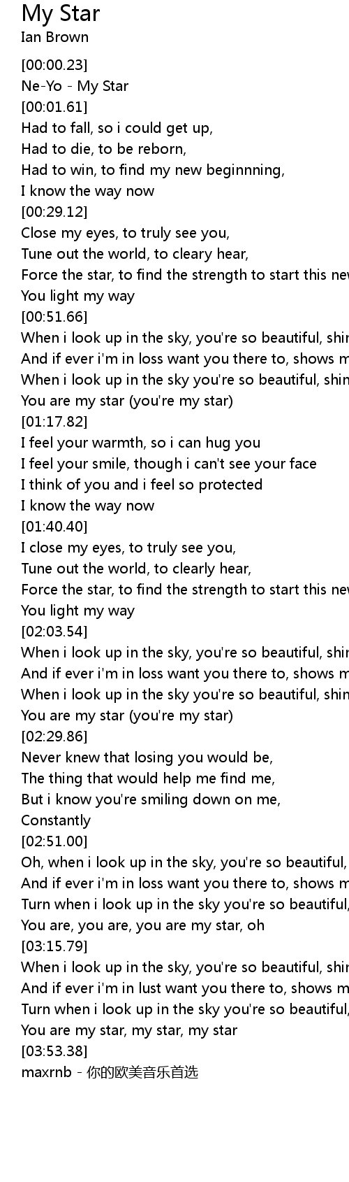 | [00:51.89] | When i look up in the sky, you're so beautiful, shining |