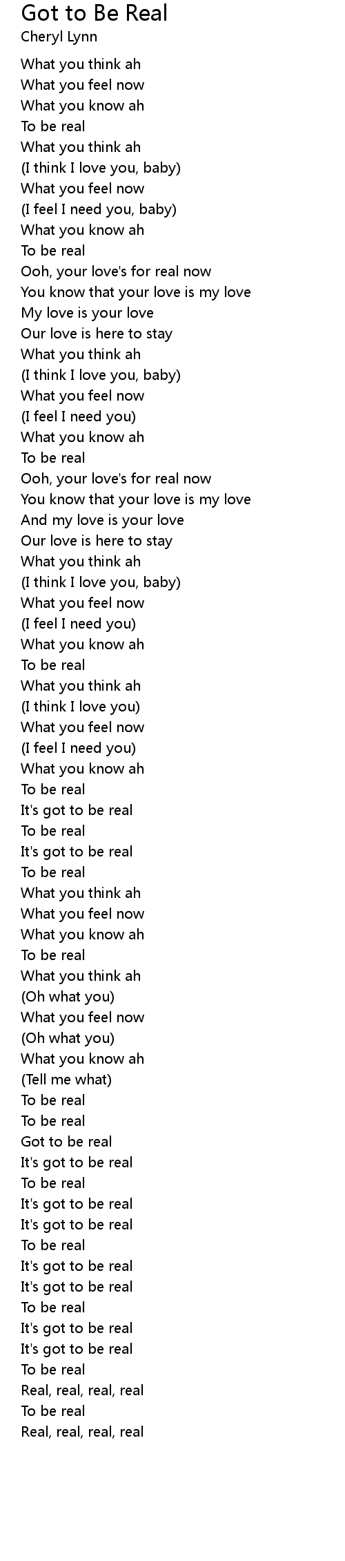 It's got to be real |