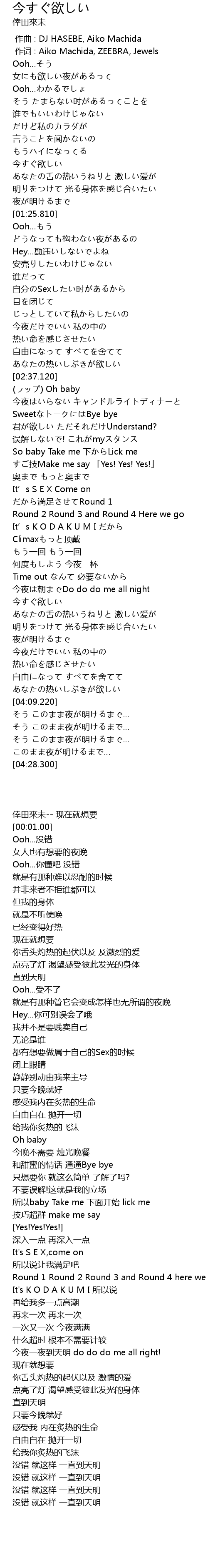 | [00:00.00] | 倖田來未-- 现在就想要 |