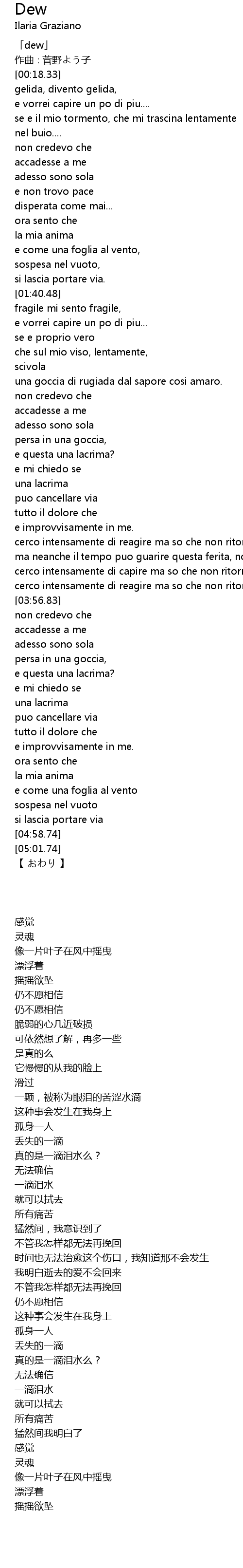 | [02:27.84] | una goccia di rugiada dal sapore cosi amaro. |