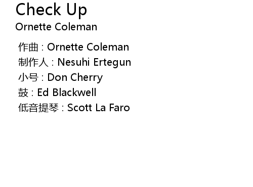 | [00:00.000] | 作曲 : Ornette Coleman |
