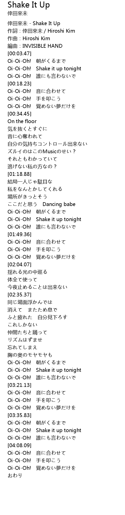 | [03:58.33] | OiOiOh! Shake it up tonight |