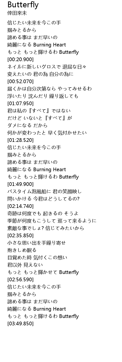 | [02:51.060] | もっと もっと輝かせて Butterfly |