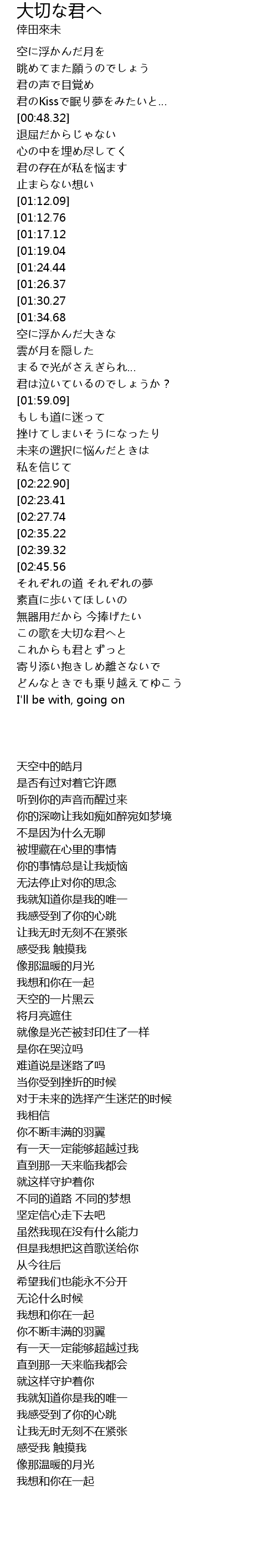 | [03:50.22][02:39.32] | 君を見守り続けたい |