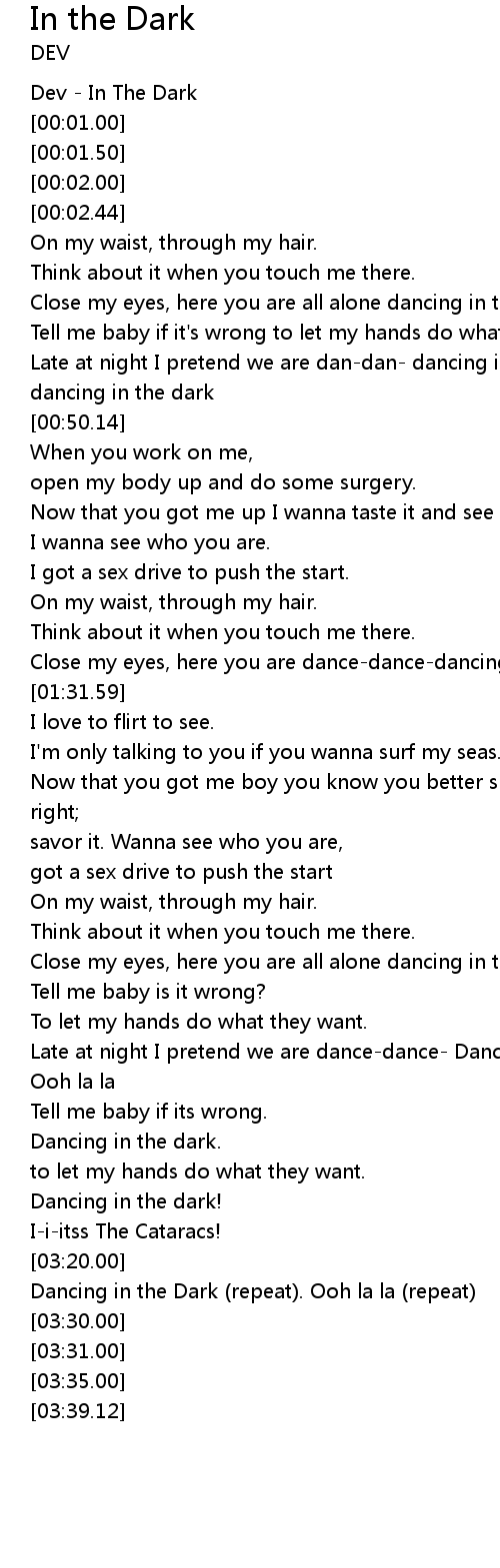 Dancing in the Dark (repeat). Ooh la la (repeat) |