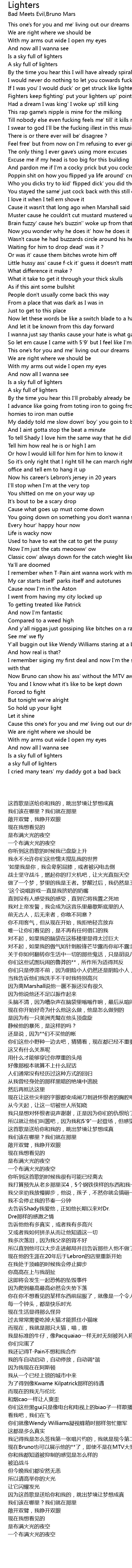 | [00:42.] | 战士坚守战斗,燃起你的打火机吧,让火光直指天空 |