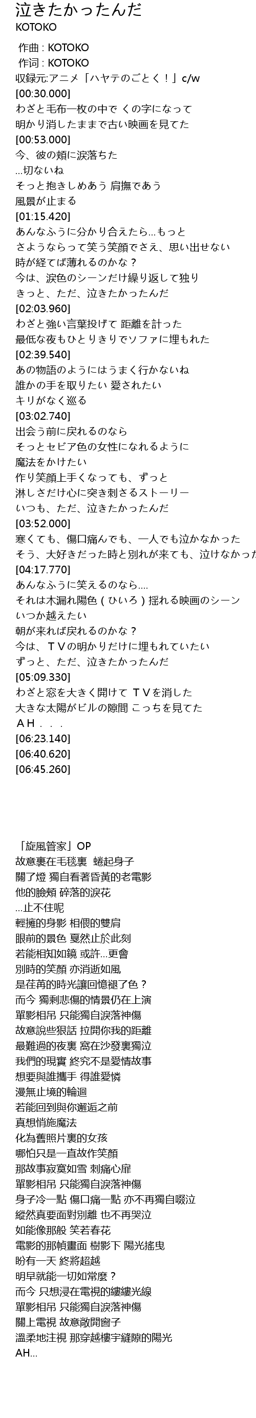 | [00:00.00] | zuo qu : KOTOKO |