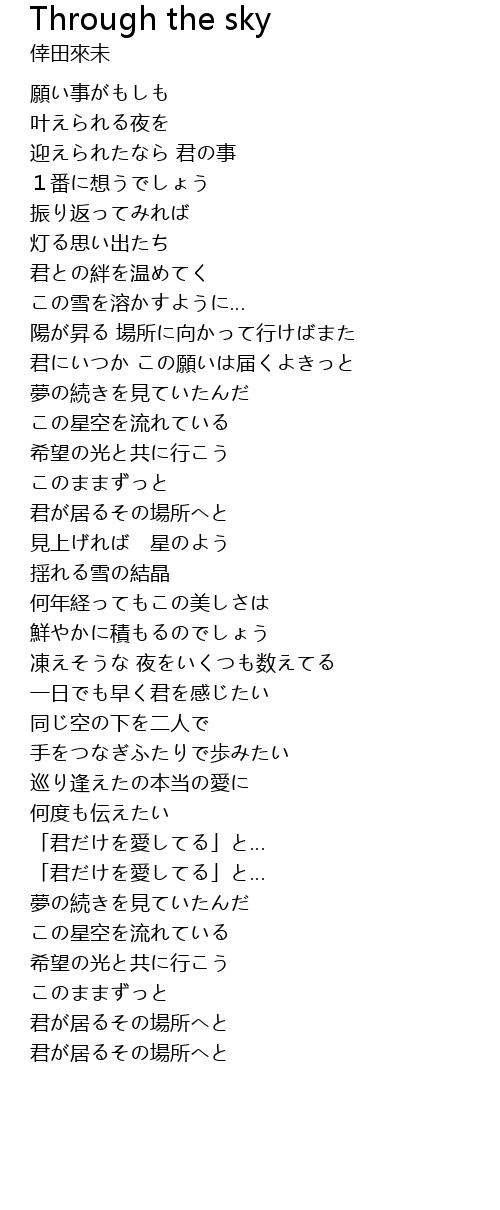 | [01:26.76] | 君にいつか この願いは届くよきっと |