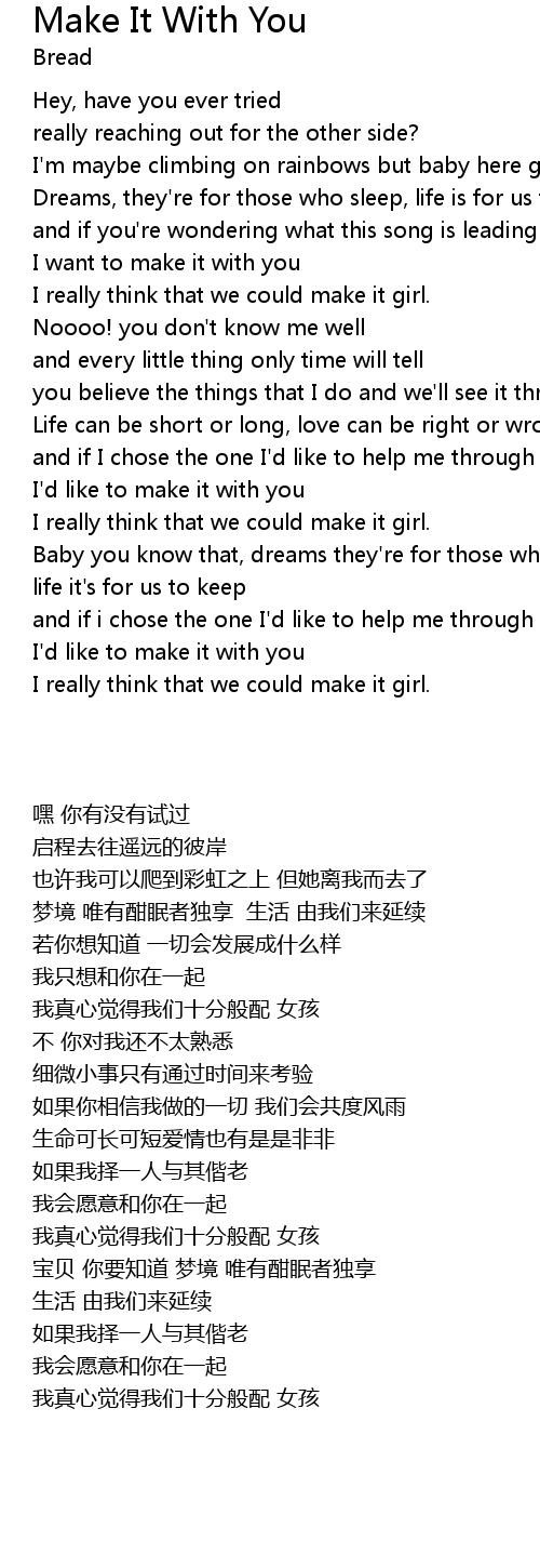 I really think that we could make it girl. |