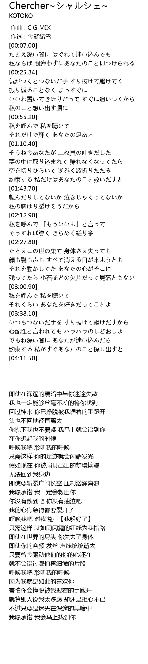 | [00:55.90] | 私を呼んで 私を聴いて |