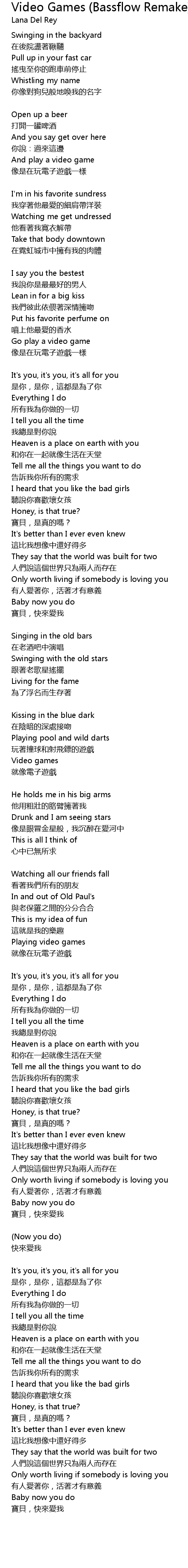 | 歌曲 | Video Games (Bassflow Remake) |