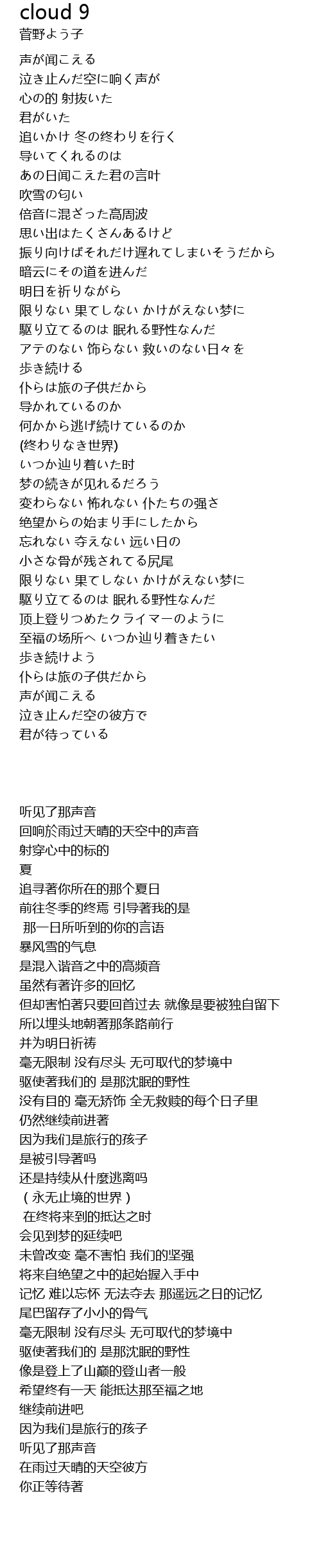 | 歌曲 | cloud 9 |